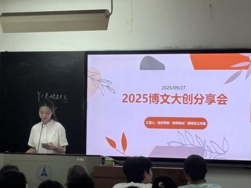 (学生通讯员 史泰格)为提升2025级新生科研兴趣与创新能力,营造良好的学术氛围,2025年9月27日,“经学纬业” 辅导员工作室于文泽楼211教室举办“博文杯”专题分享会。本次分享会邀请到经法2201班巩震鲁、经实2201班胡子瑄及经济2302班郭钰担任主讲人,90余名新生到场参与,现场交流氛围热烈,成效显著。