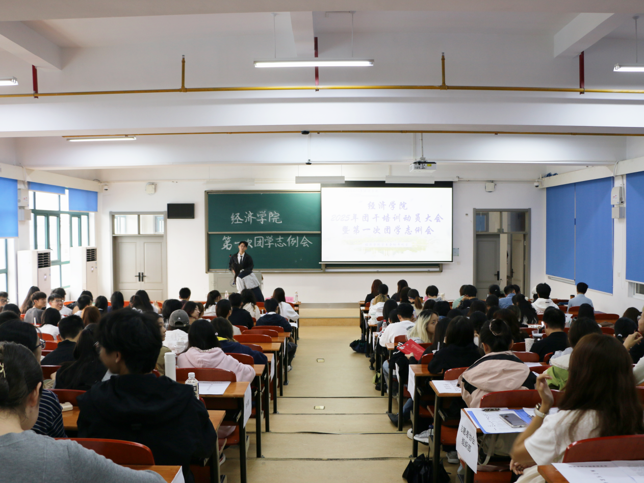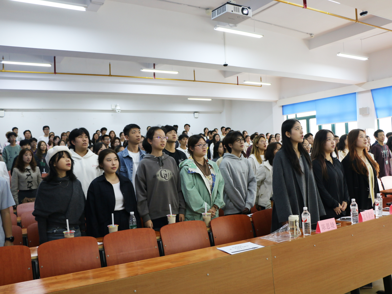 大会伊始,全体参会人员起立合唱共青团团歌,歌声铿锵有力,展现了经济学院学子积极向上的精神风貌。