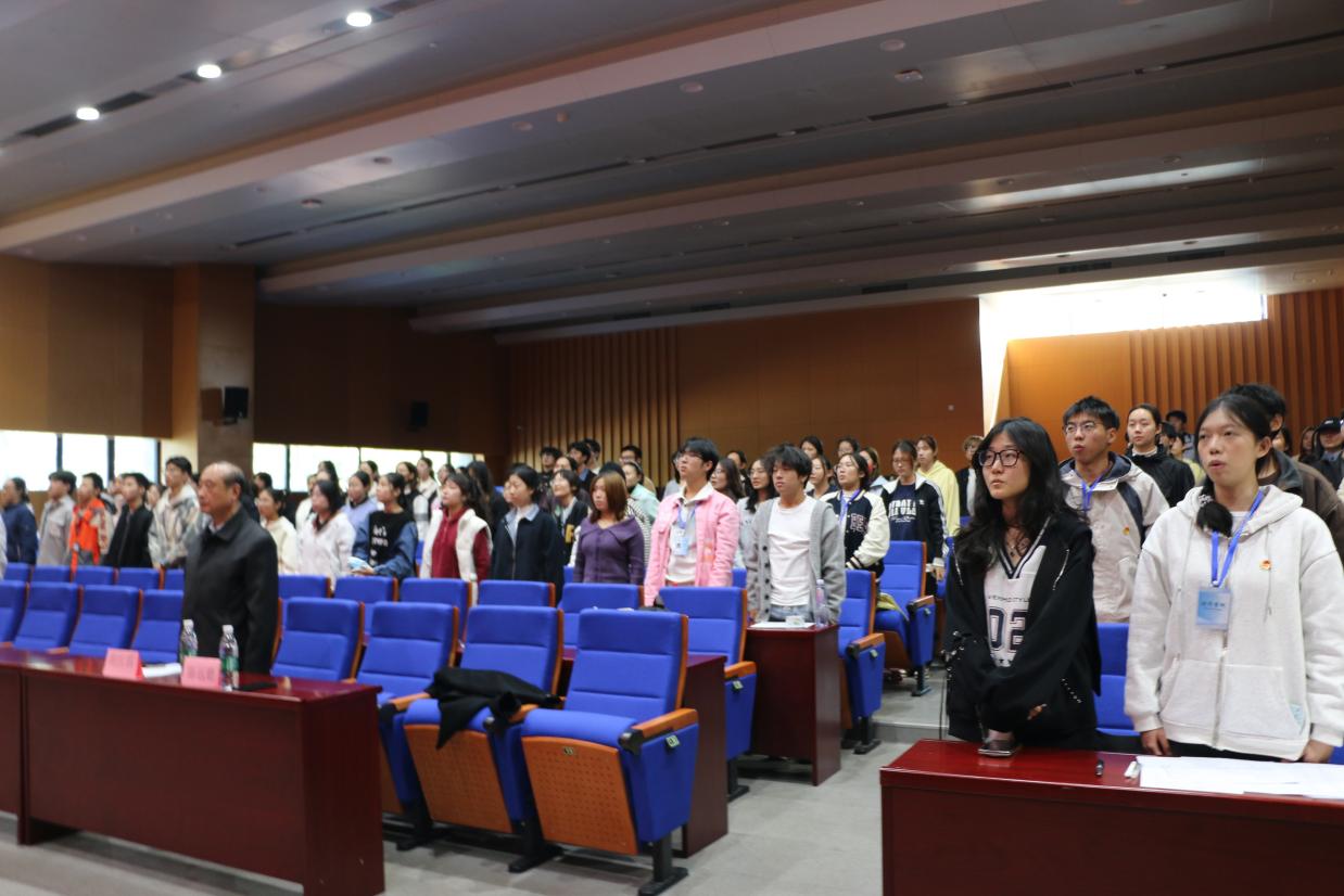 大会第一项,奏唱共青团团歌。全体师生起立合唱,歌声响彻报告厅,鼓舞学员铭记责任、积极奉献。