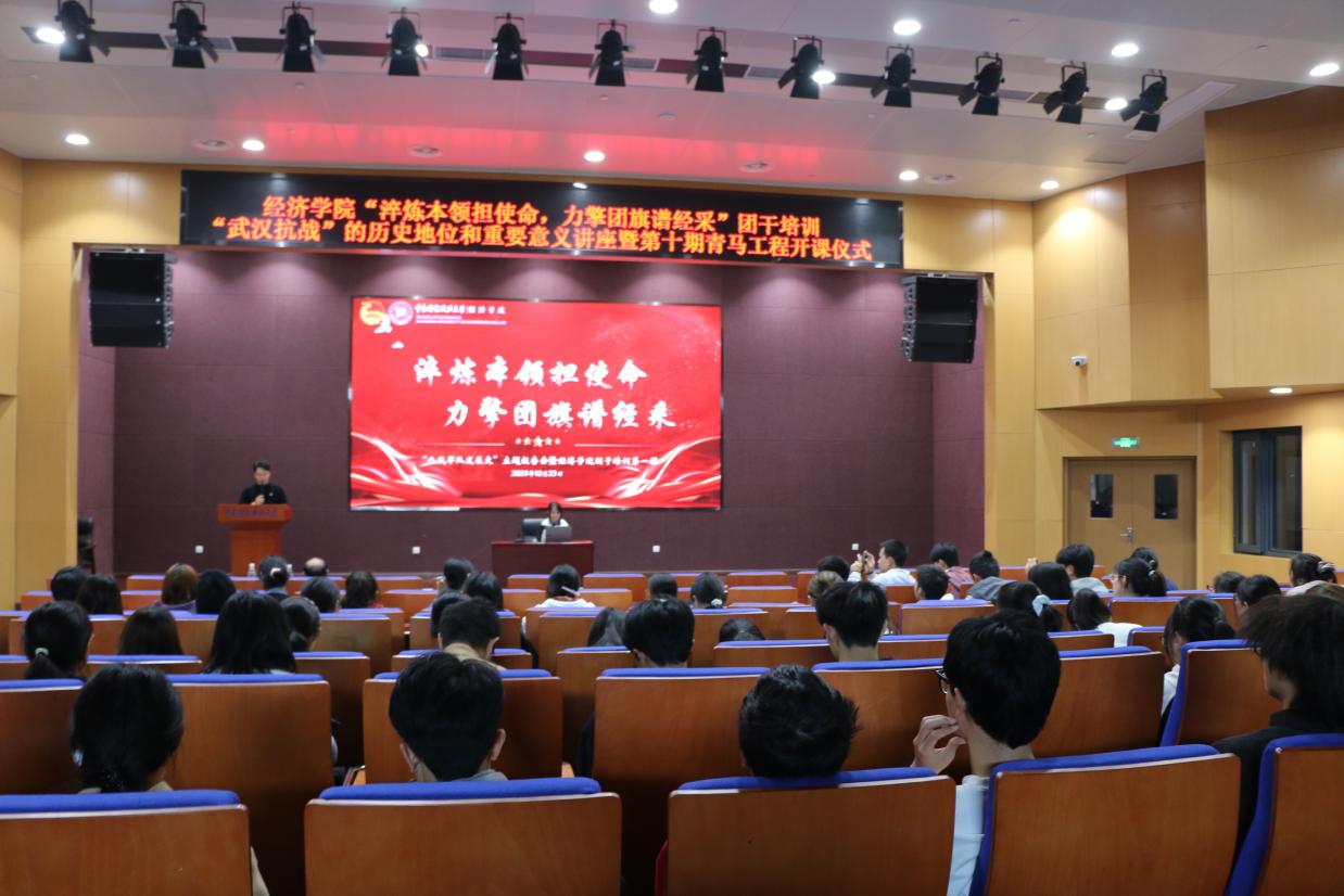(学生记者 王熙丞 摄影 周佳怡)学史明志,知史砺行。为培养经济学院团委、学生会、志愿者协会(以下简称“团学组织”)学员和新发展团员及学院青苗班、青禾班、青马班学员的革命精神和政治素养,推动团学组织发展,经济学院2025年“武汉抗战”的历史地位和重要意义主题报告会暨团干培训第一课将于10月23日在南湖校区文瀚楼一楼南隆重召开。中南财经政法大学原经济学院党委书记、现学校离退休人员党委副书记、学校关心下一代工作委员会副秘书胡江滨教授,经济学院团委书记、2025级本科生辅导员陈远瞻参会。学院青苗班、青禾班、青马班学员,2025级团学组织新学员,2025年新发展团员到场参加培训,会议由陈远瞻主持。