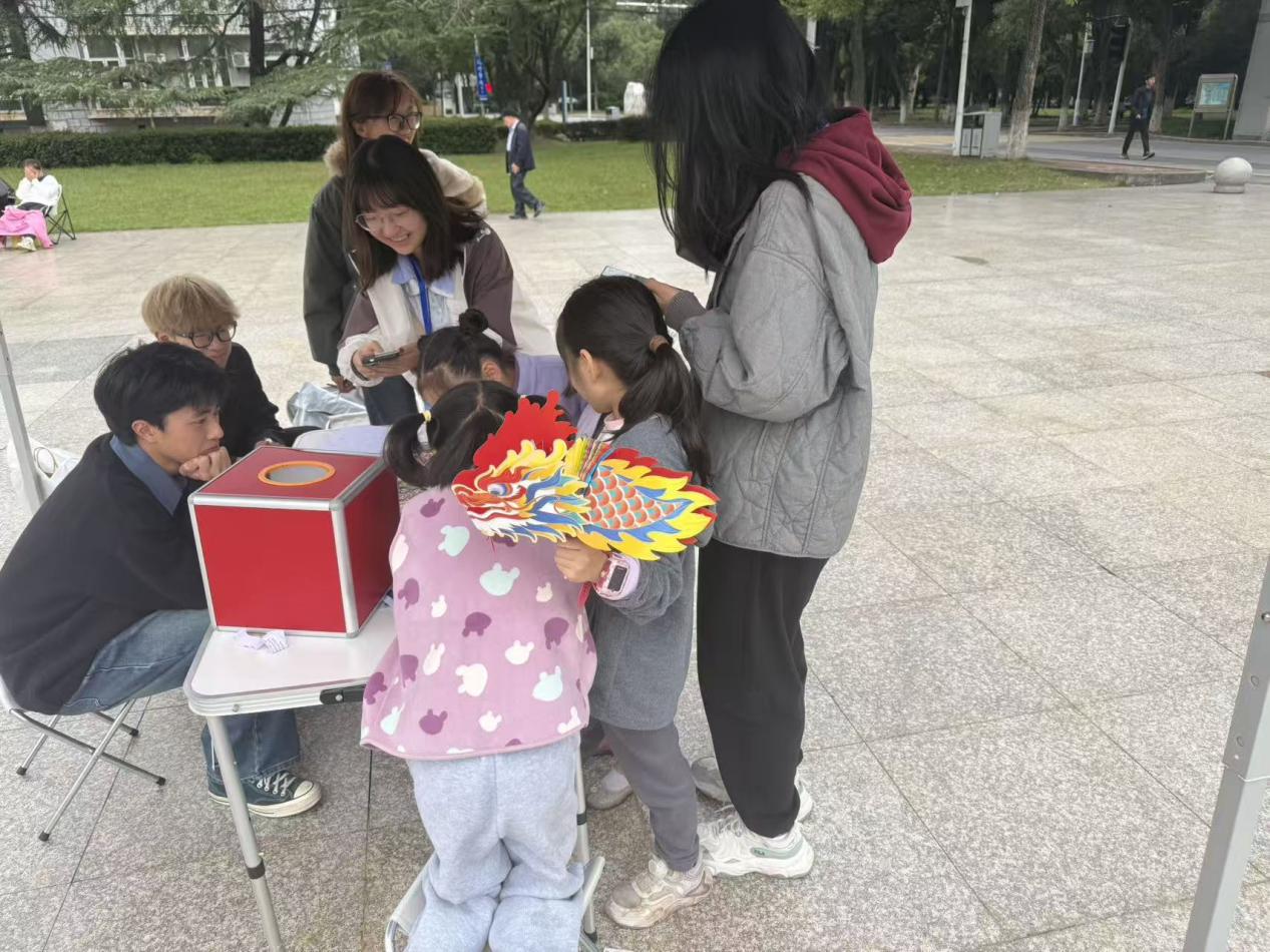 更令人惊喜的是,一些小朋友也参与了本次活动。这些孩子对防骗知识的熟悉程度超乎预期,他们不仅能准确识别常见骗局,还能用稚嫩的语言解释其中缘由,与大学生们形成良好互动。当稚嫩的童声与青春的笑语相互应和,防诈意识已在潜移默化中深入人心。