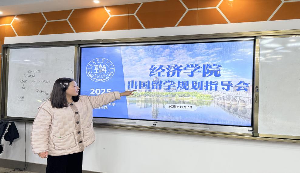 (学生通讯员曾含章)为助力经济学院青年学子明晰留学发展路径,破解留学申请、境外学习生活等方面上的困惑,切实提升升学竞争力,11月7日下午,“经学纬业”辅导员工作室于文澴楼612智慧教室成功举办了出国留学规划指导会。本次活动由经济学院2024级辅导员孟庆红老师主持,特邀资深留学规划专家、海外高校校友联袂主讲,吸引了众多本科生广泛参与。