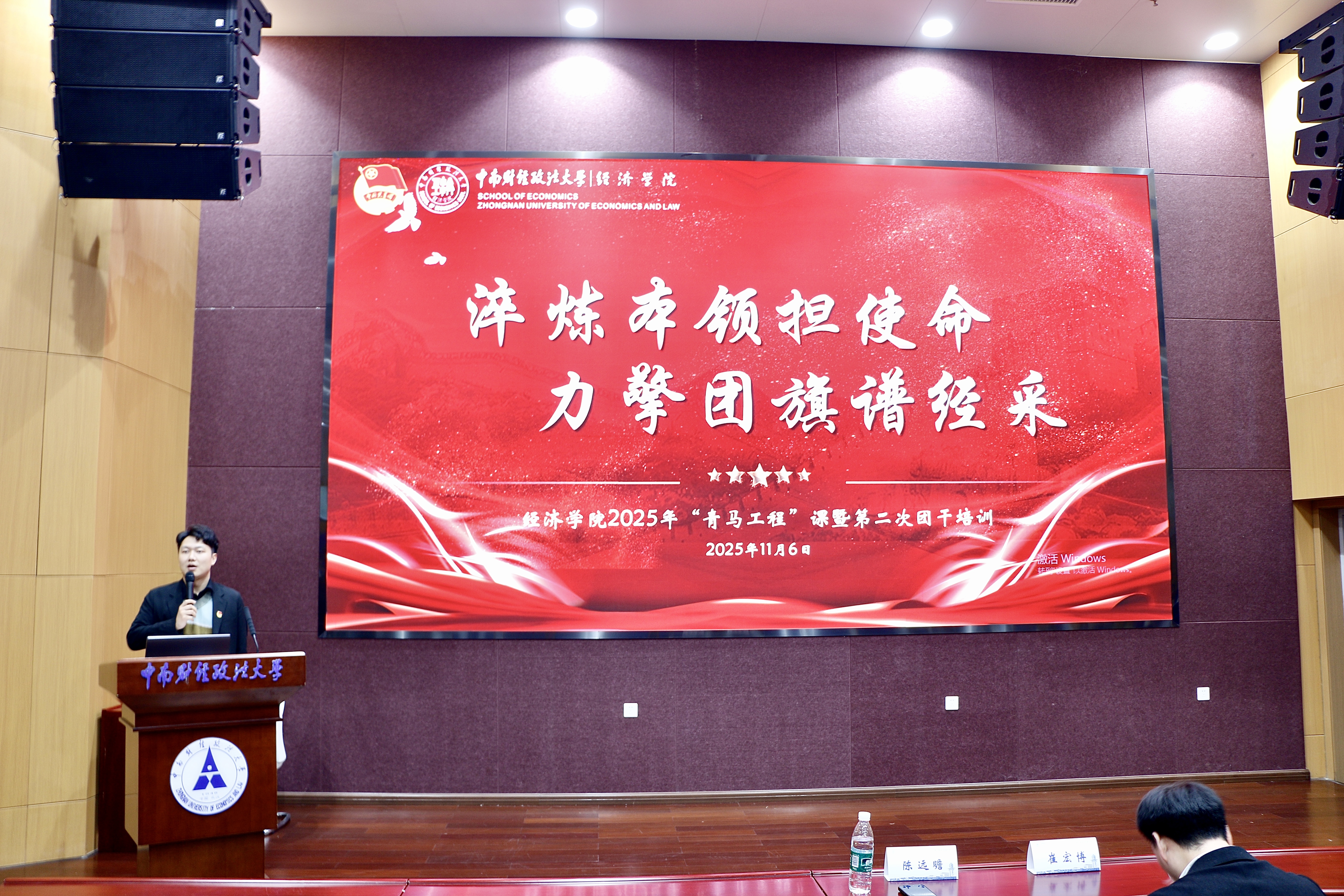 (学生记者 吴迪宇昂 摄影 郭紫琳 )为了深入贯彻新时代青年工作理念,全面提升学生骨干应用文写作能力,增强基层团组织“三力”,2025年11月6日下午,中南财经政法大学经济学院2025年“做AI的主人”主题报告会暨团干培训第二课于南湖校区文瀚楼北报告厅顺利举办。华中师范大学文学院团委书记崔宏博受邀主讲,经济学院团委书记陈远瞻及学院2025级学员到场参会。