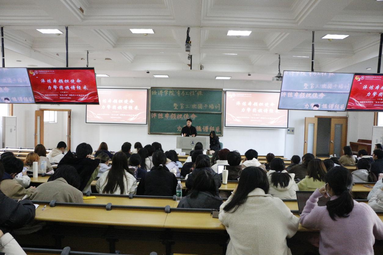 (学生记者 张益嘉 摄影 周佳怡)为了深入落实立德树人根本任务,全面激发学生创新潜能,助力青年在竞赛历练中锤炼本领、实现成长成才,2025年11月20日下午,中南财经政法大学经济学院2025年“以赛促学 挑战未来”主题报告会暨团干培训第三课于首义校区文津楼301顺利举办。华中师范大学公共管理学院共青团团建指导员、导师张子规受邀主讲,中南财经政法大学经济学院团委书记陈远瞻出席会议,经济学院2025级学员到场参会。