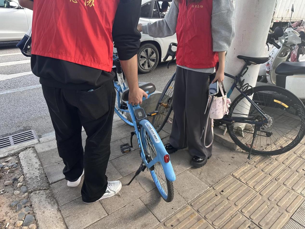 当日下午两点,行动正式开始。志愿者们摇身一变为城市的守护者,他们细心移开霸占盲道的共享单车,俯身捡起散落的杂物,用垃圾夹夹起地面的纸团。即便汗水浸湿了他们的衣背,但一条畅通、安全的盲道在他们的手下逐渐恢复了整洁通畅。志愿者们感受到了前所未有的自豪感。