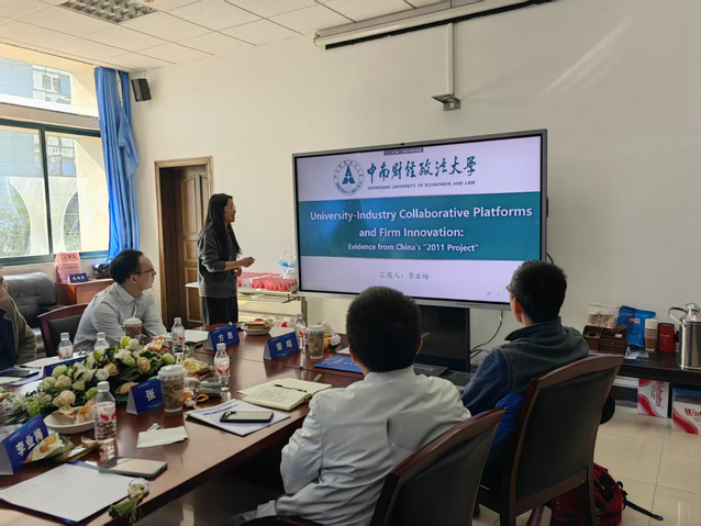 最后,中南财经政法大学李业梅助理教授报告了以《University-Industry Collaborative Platforms and Firm Innovation: Evidence from China's "2011 Project"》为题的研究成果。研究聚焦于国家“2011计划”协同创新中心,系统评估了此类高水平、战略性产学研平台对企业创新的影响,弥补了现有文献对微观企业层面证据的不足,为协同创新平台的制度优化提供了参考。交流环节,与会师生对小样本数据可能产生的内生性问题,基于政策的创新网络演化图呈现视角问题、创新质量结果不符合预期的现实意义问题等展开了激烈的讨论。
