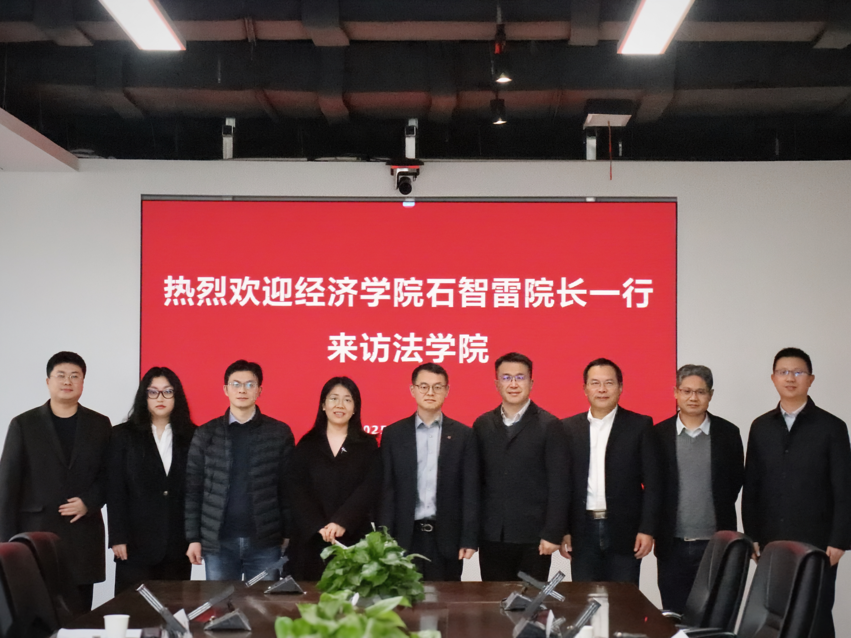 为落实学校学科交叉融通战略,进一步强化学院间沟通协作,凝聚办学治院合力,推动学科建设与人才培养工作高质量发展,12月17日上午,经济学院院长石智雷教授,副院长宋丽智、张鸿武,青年教师骨干一行赴法学院开展调研交流。法学院院长侯猛教授、副院长袁中华教授及相关领导出席交流座谈会。