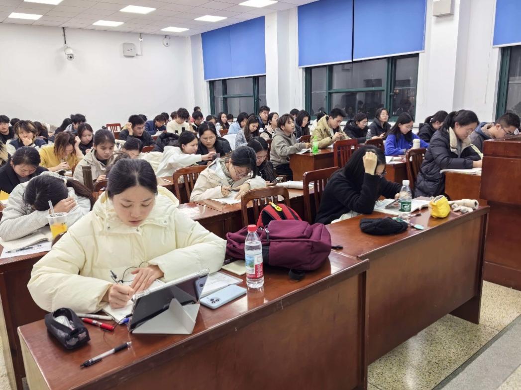 (学生通讯员 王晶晶)为筑牢学生诚信应考思想防线,营造公平公正的考试环境,2025年12月22日晚,经济学院经统、经法、经实三个班在文泰405教室联合举办期末考试考前诚信承诺书签名活动。活动由经统2401班班长王晶晶、经法2401班团支书刘诗琴、经实2401班班长杨阳共同组织,三个班级全体同学参与。
