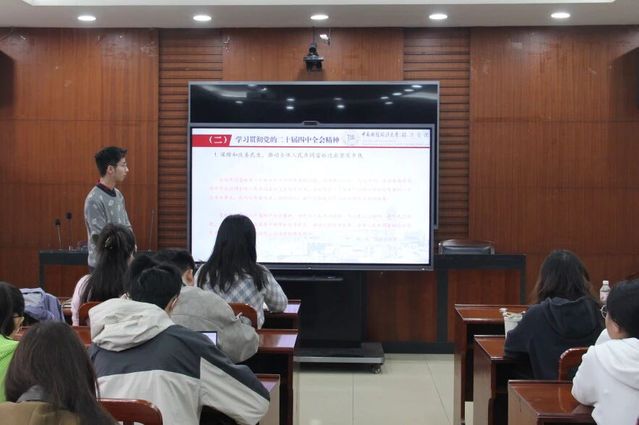 为深入学习贯彻习近平新时代中国特色社会主义思想,深刻领会、准确把握党的二十届四中全会精神的要义,引导经济学院研究生深刻把握“十五五”时期经济发展的指导方针和主要目标,2025年11月11日下午,经济学院于文泉楼南206室组织开展“党的二十届四中全会精神学习暨研究生骨干培训会”。研究生办公室主任岳明泽老师、研究生辅导员雷菁老师出席会议,全体研究生骨干参会,会议由研究生会主席团成员寿瑞俊主持。