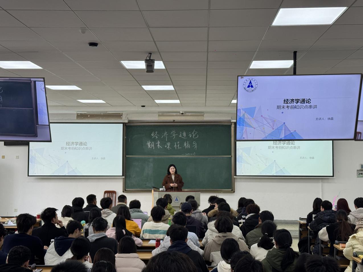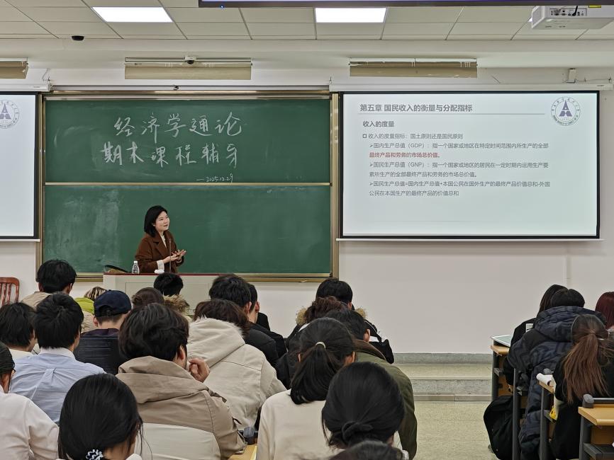 (学生通讯员 马茜)《经济学通论》课程组是经济学院重点打造的西方经济学卓越教学团队之一。本课程为全校通识课,授课学生对象为全校非经济学类专业学生。为帮助全校修读本课程的学生系统梳理经济学理论知识、精准破解复习难点,12月29日下午,由中南财经政法大学学习发展中心和经济学院联合主办的《经济学通论》课程重难点知识辅导活动在文泰楼319教室顺利举办。活动特邀课程组青年骨干教师徐晶博士主讲,200余名学子线下参与,现场学习氛围浓厚,收获广泛好评。