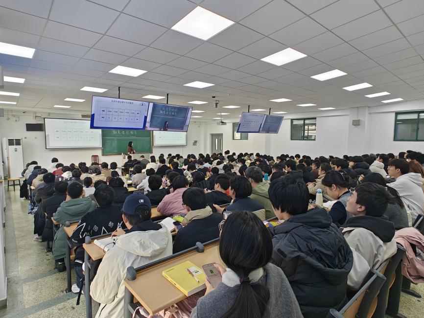 (学生通讯员 马茜)《经济学通论》课程组教师团队是经济学院重点打造的卓越教学团队之一。本课程为全校通识课,授课学生对象为全校非经济学类专业学生。为帮助全校修读本课程的学生系统梳理经济学理论知识、精准破解复习难点,12月29日下午,由中南财经政法大学学习发展中心和经济学院联合主办的《经济学通论》课程重难点知识辅导活动在文泰楼319教室顺利举办。活动特邀课程组青年骨干教师徐晶博士主讲,200余名学子线下参与,现场学习氛围浓厚,收获广泛好评。