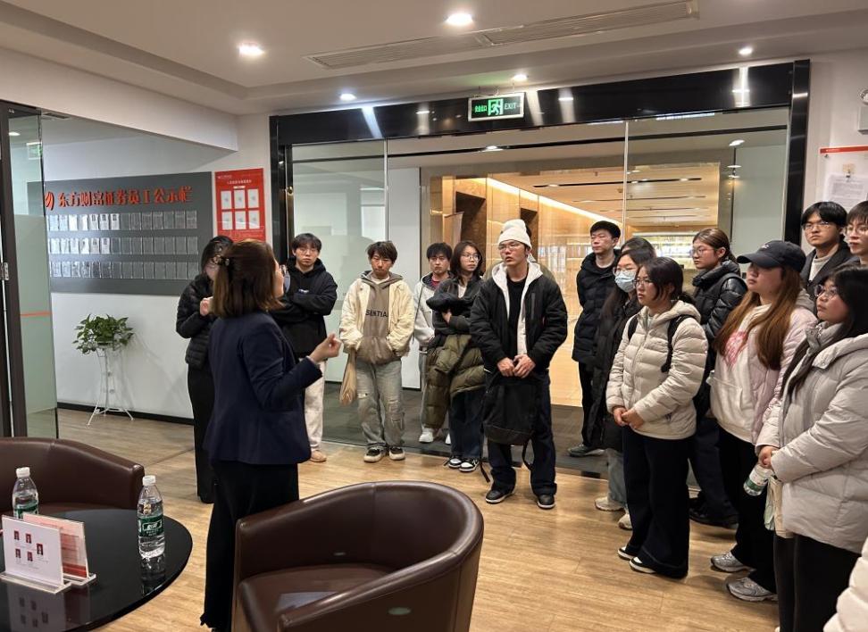 参访活动伊始,东方财富证券湖北分公司领导对学院师生的到访表示热烈欢迎,带领大家简要参观了公司办公区域,直观了解证券机构的日常运营场景与业务布局,为后续的深度交流奠定实践基础。