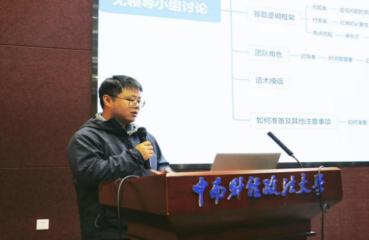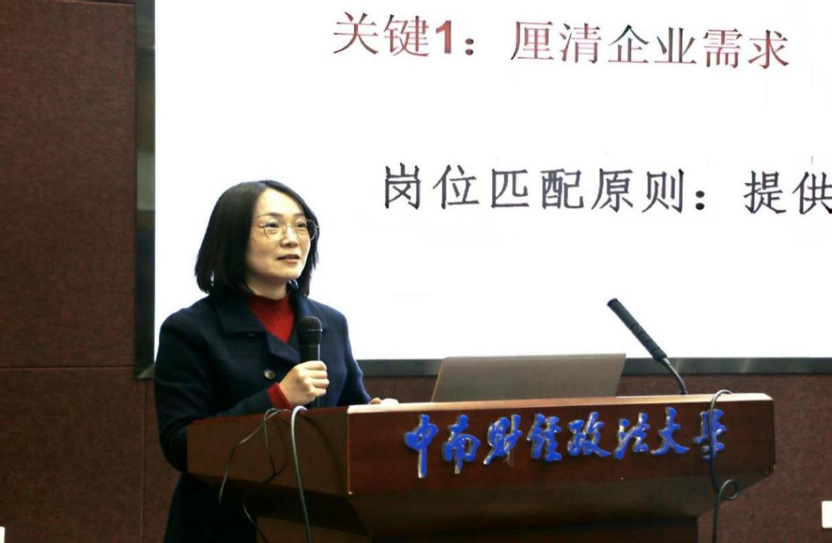 接下来,中南财经政法大学就业指导服务中心副主任贾晓立足当下国情与大学生就业现状,深入阐释了本次大赛在助力学生成长成才方面的重要作用。她提到,当下就业竞争日趋激烈,用人单位更加看重毕业生的综合素养与实践能力,借助模拟招聘活动,大家能提前熟悉求职环节,认清自身差距,及时优化职业规划。她也寄语同学们踊跃参与、尽显才华,在实战演练中提升求职本领,为今后顺利步入职场做好充分准备。