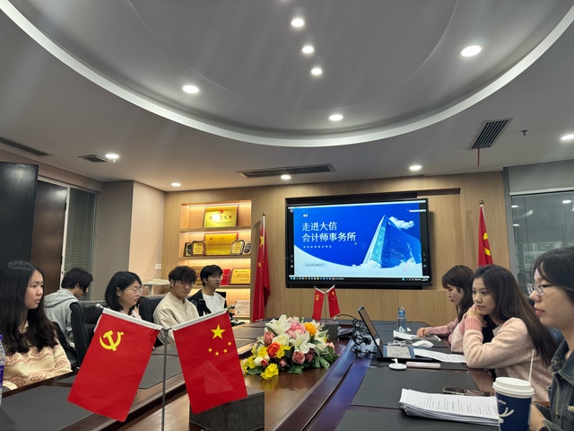 活动最后,同学们跟随工作人员走进大信会计师事务所现代化办公场地,依次参观了办公区域、业务板块布局。从日常办公流程到核心业务运营,师生们直观领略了专业财经机构的严谨氛围与专业质感,打破了对行业的认知壁垒,对会计师事务所的工作模式与行业定位有了更具象的理解。