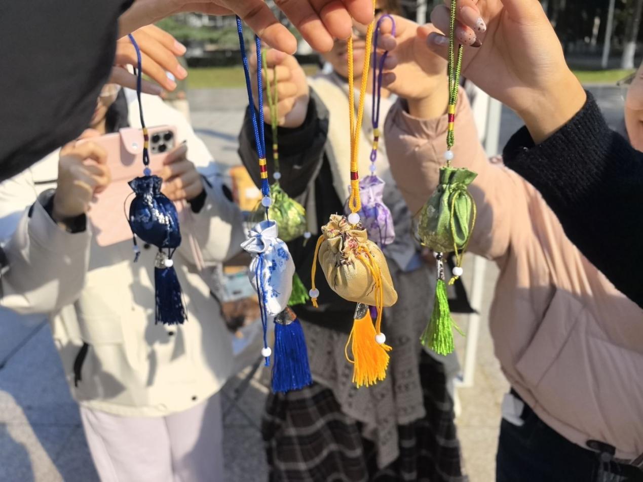 (通讯员 梁伟逸)又值秋光潋滟,木叶泛黄之季,古人曾以文会友、寄情山水。为了感受古人之风雅、应时节之静美,中南财经政法大学经济学院志愿者协会在2025年11月22日于中南财经政法大学首义校区首义会堂前开展了“留我花间住”活动,以香囊寄意、诗词唱和、投壶雅戏等为校园构筑一个沉浸式的传统文化体验空间。